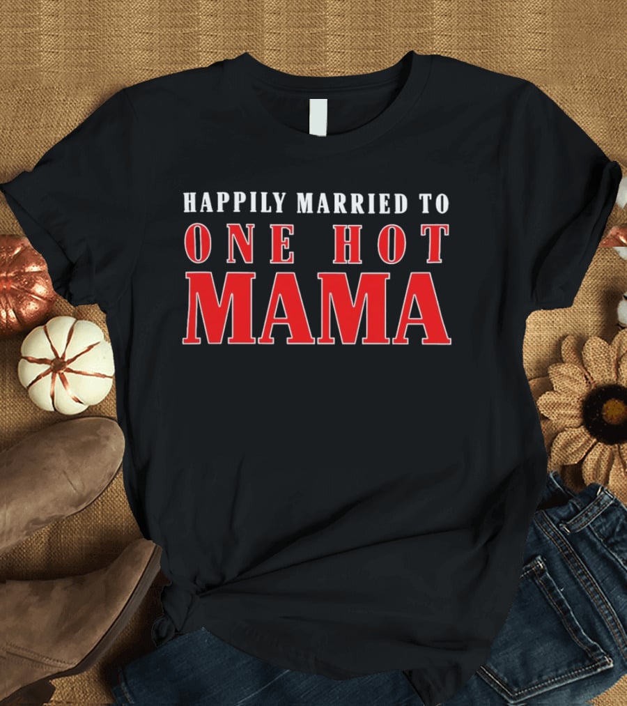 Happily Married to One Hot Mama Shirt made from 100% pre-shrunk ring-spun cotton, unisex regular fit based on U.S. standard sizing. The shirt is designed, cut, sewn, and printed in the United States. Available in sizes S-5XL.