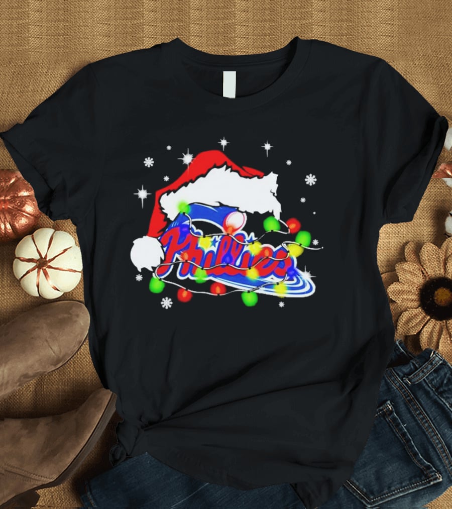 Santa Hat Philadelphia Phillies Christmas Lights T-Shirt