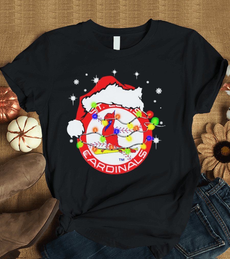 Santa Hat St. Louis Cardinals Christmas Lights Holiday T-Shirt