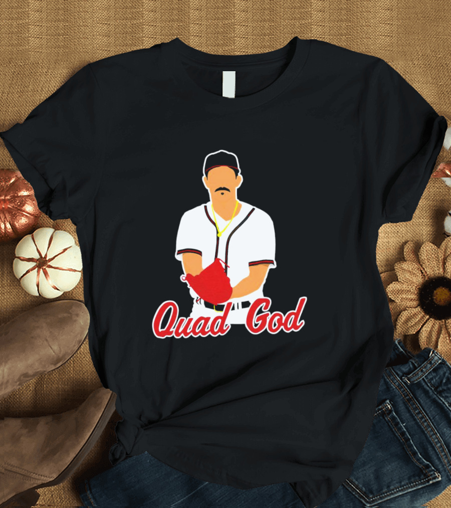 Quad God Spencer Strider Atlanta Baseball Shirt made from 100% pre-shrunk ring-spun cotton, unisex regular fit based on U.S. standard sizing. The shirt is designed, cut, sewn, and printed in the United States. Available in sizes S-5XL.