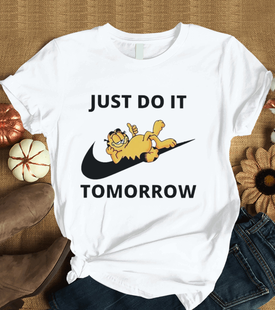 Garfield Just Do It Tomorrow Shirt made from 100% pre-shrunk ring-spun cotton, unisex regular fit based on U.S. standard sizing. The shirt is designed, cut, sewn, and printed in the United States. Available in sizes S-5XL.