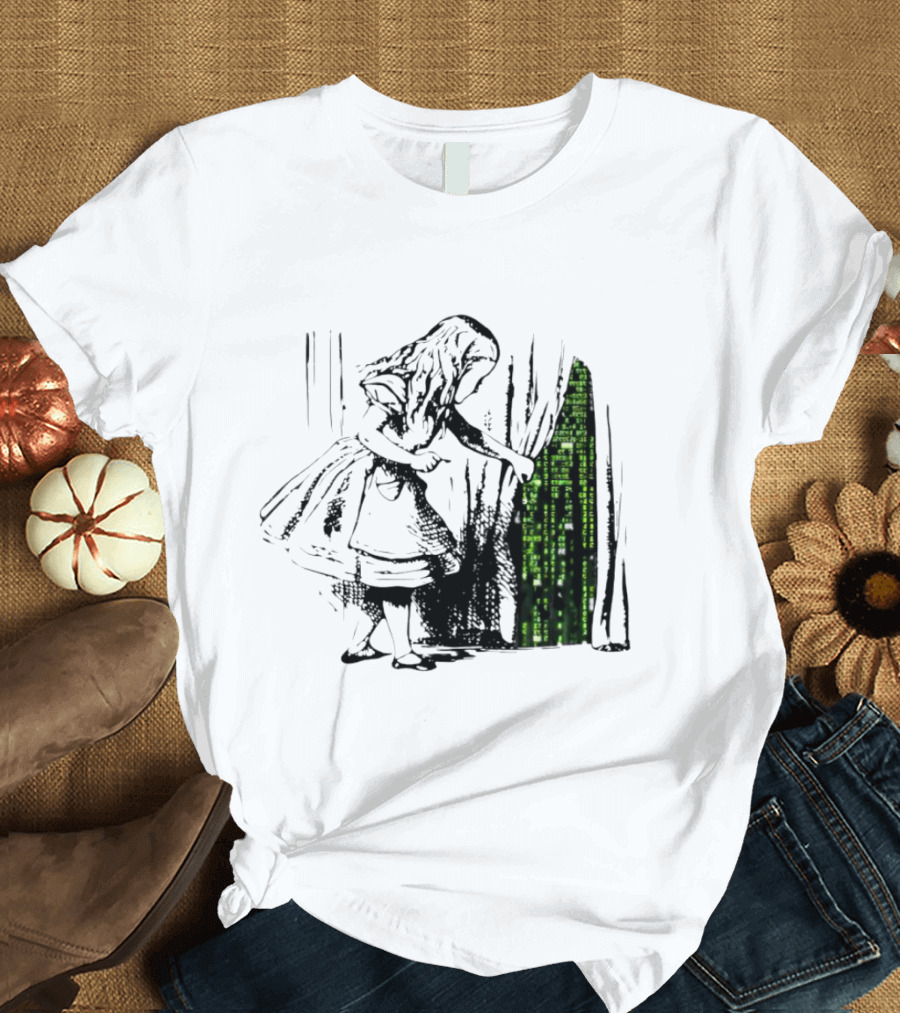 Alice Enters The Matrix New World Shirt made from 100% pre-shrunk ring-spun cotton, unisex regular fit based on U.S. standard sizing. The shirt is designed, cut, sewn, and printed in the United States. Available in sizes S-5XL.