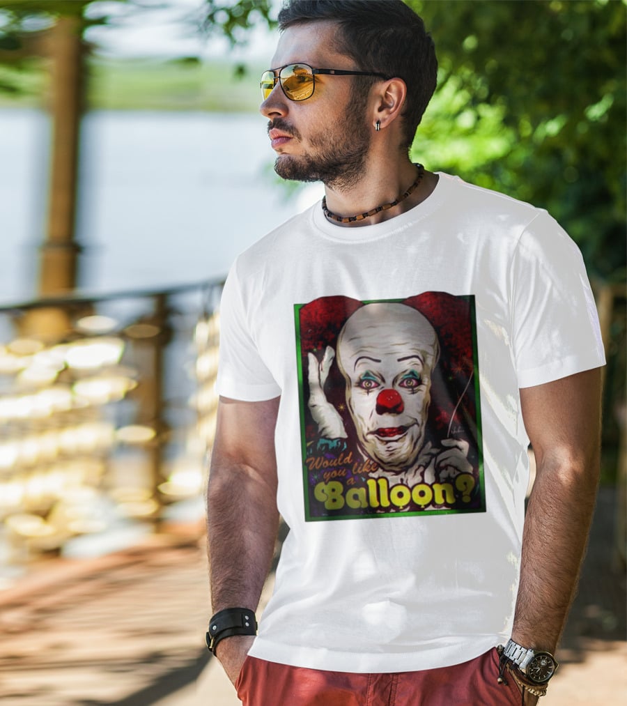 Would You Like A Balloon Clown Face Art by Nordacious Shirt made from 100% pre-shrunk ring-spun cotton, unisex regular fit based on U.S. standard sizing. The shirt is designed, cut, sewn, and printed in the United States. Available in sizes S-5XL.
