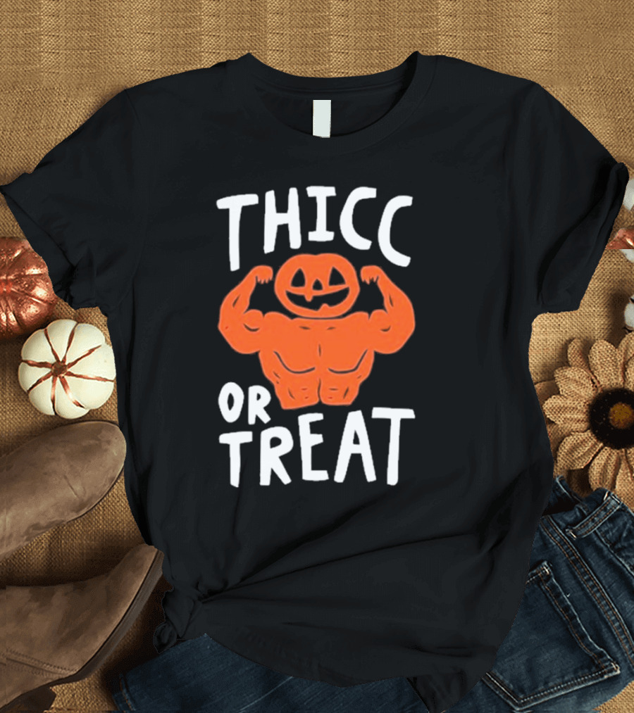 Bri Missbrisolo Thicc or Treat Halloween Pumpkin Jack-O'-Lantern Bodybuilder Shirt made from 100% pre-shrunk ring-spun cotton, unisex regular fit based on U.S. standard sizing. The shirt is designed, cut, sewn, and printed in the United States. Available in sizes S-5XL.