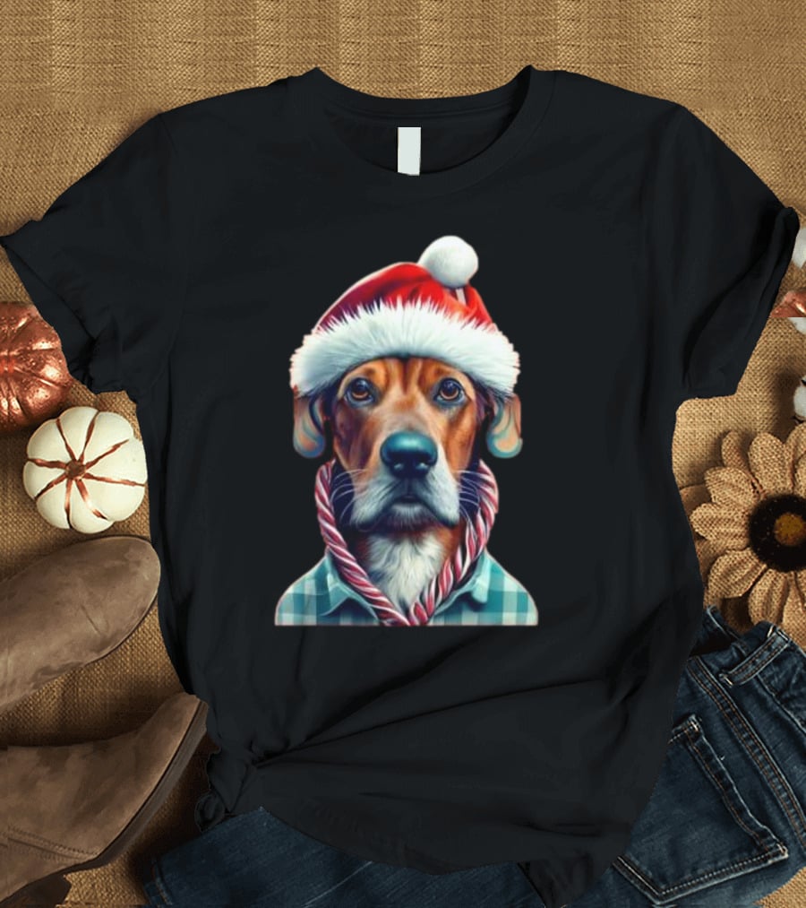 Dog In Santa Hat With Candy Cane Scarf Christmas T-Shirt