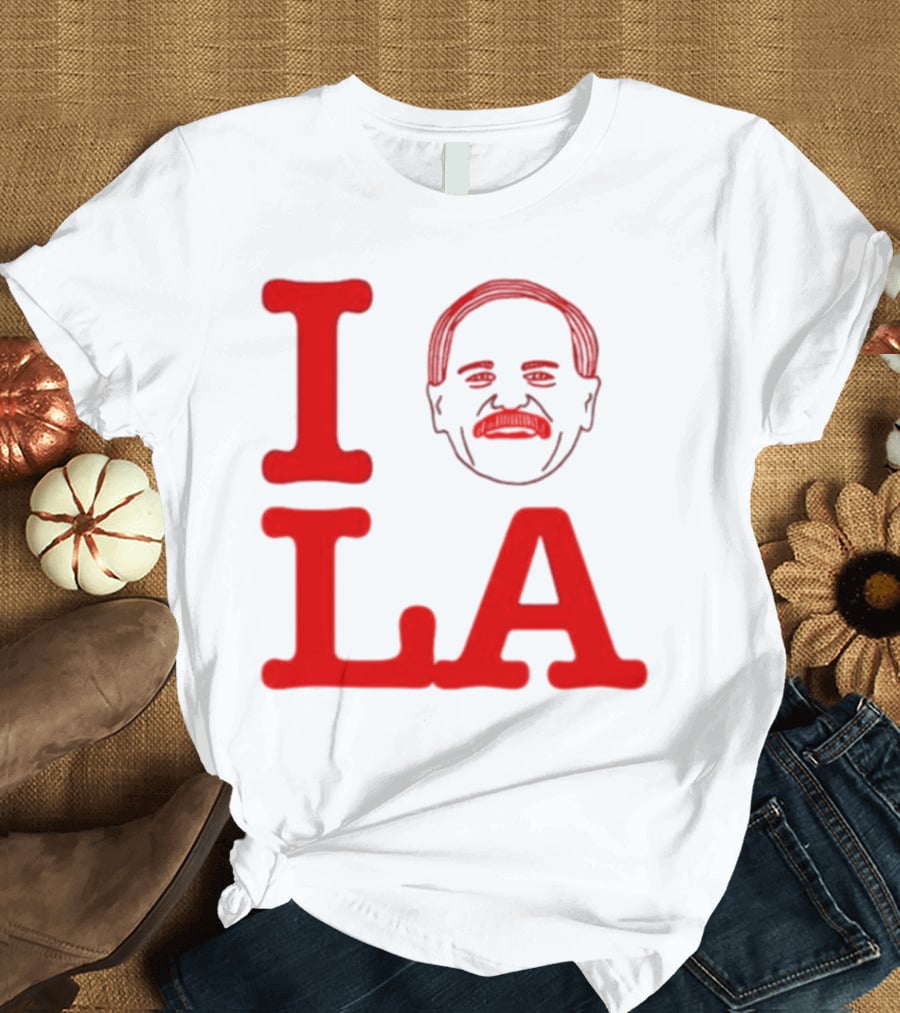 I Love John Kruk and LA with Mustache Shirt made from 100% pre-shrunk ring-spun cotton, unisex regular fit based on U.S. standard sizing. The shirt is designed, cut, sewn, and printed in the United States. Available in sizes S-5XL.