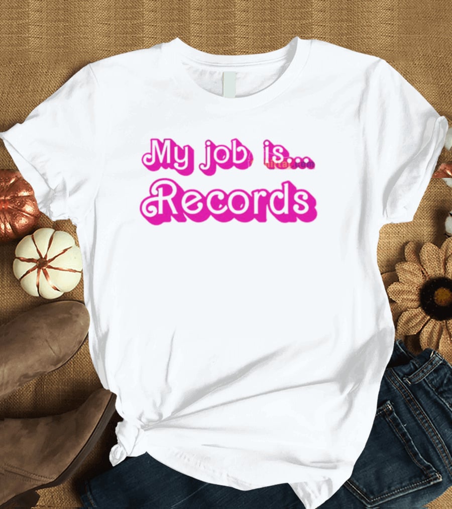 Dr. Colleen Shogan My Job Is Records Shirt made from 100% pre-shrunk ring-spun cotton, unisex regular fit based on U.S. standard sizing. The shirt is designed, cut, sewn, and printed in the United States. Available in sizes S-5XL.