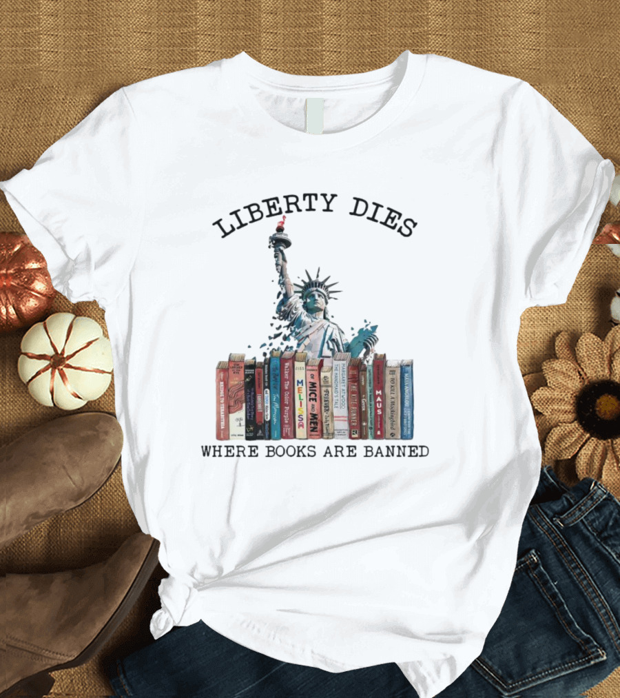 Liberty Dies Where Books Are Banned Statue Of Liberty With Challenged Classics T-Shirt