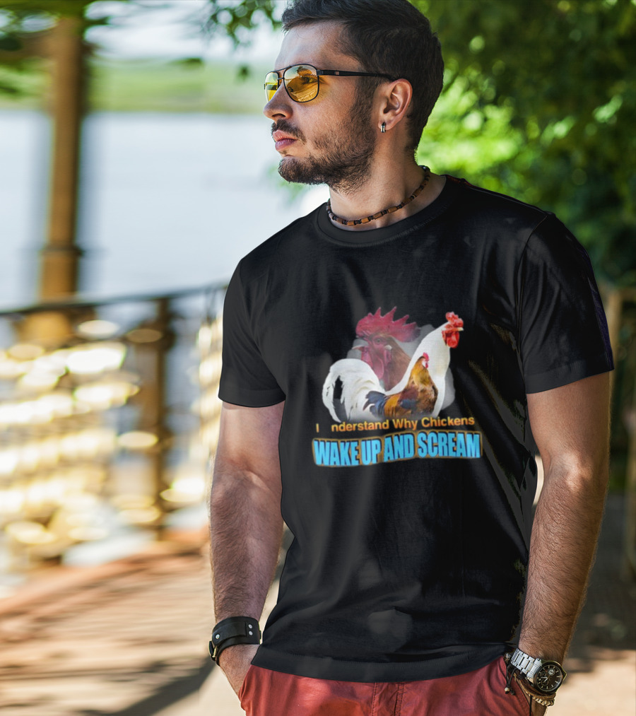I Understand Why Chickens Wake Up And Scream Bold Rooster Images T-Shirt