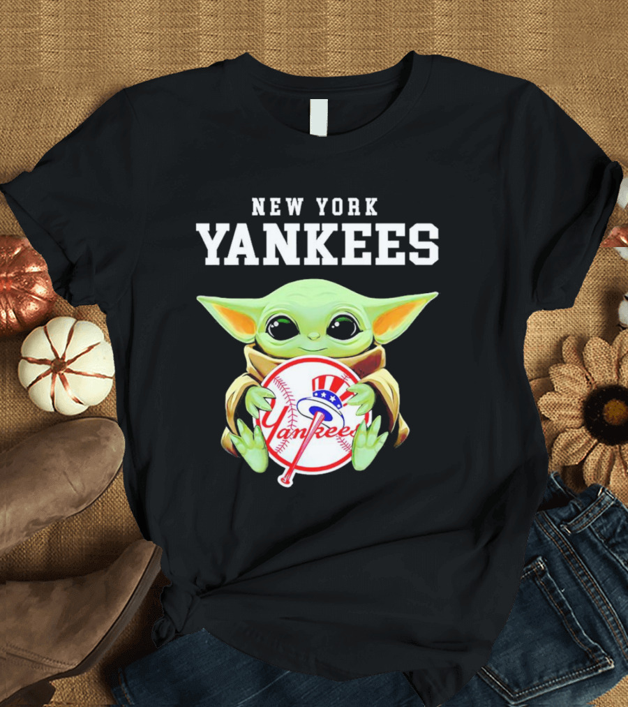 New York Yankees Baby Yoda Holding Team Baseball Emblem Shirt made from 100% pre-shrunk ring-spun cotton, unisex regular fit based on U.S. standard sizing. The shirt is designed, cut, sewn, and printed in the United States. Available in sizes S-5XL.