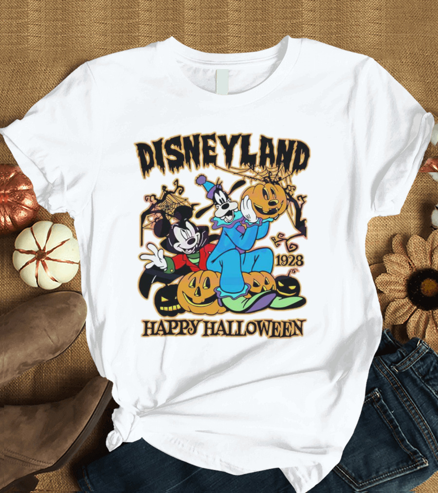Disneyland Happy Halloween 1928 Mickey Goofy Pumpkins T-Shirt