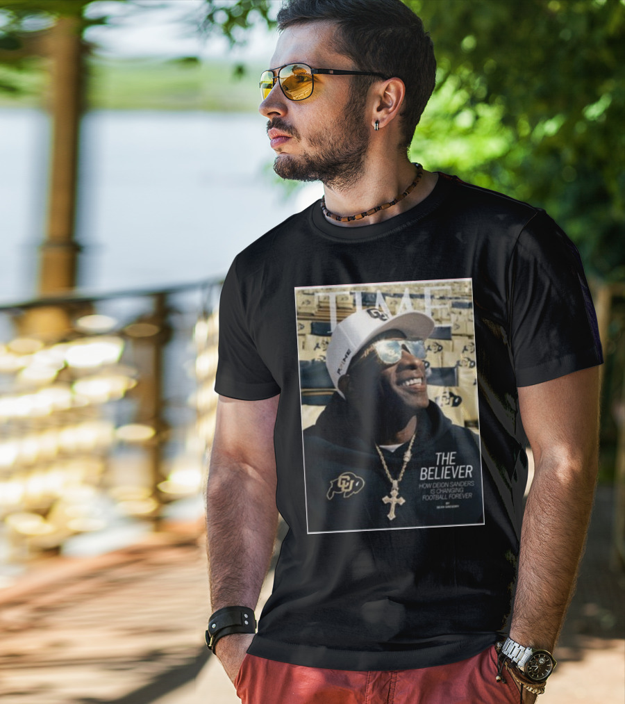 TIME The Believer How Deion Sanders Is Changing Football Forever Coach Prime Shirt made from 100% pre-shrunk ring-spun cotton, unisex regular fit based on U.S. standard sizing. The shirt is designed, cut, sewn, and printed in the United States. Available in sizes S-5XL.