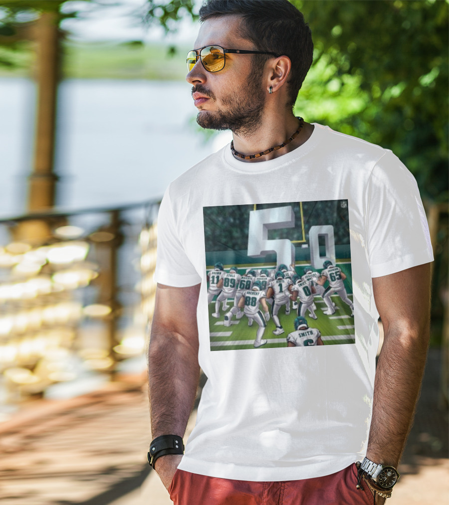 Jalen Hurts Brotherly Shove 5-0 Eagles Victory Shirt made from 100% pre-shrunk ring-spun cotton, unisex regular fit based on U.S. standard sizing. The shirt is designed, cut, sewn, and printed in the United States. Available in sizes S-5XL.