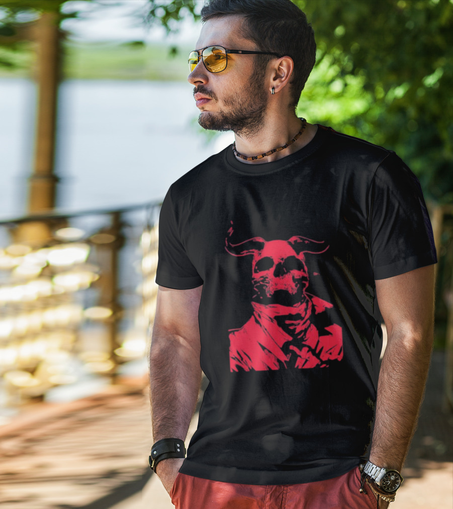 Massivefaceart Not Great Skull Demon Red Shirt made from 100% pre-shrunk ring-spun cotton, unisex regular fit based on U.S. standard sizing. The shirt is designed, cut, sewn, and printed in the United States. Available in sizes S-5XL.