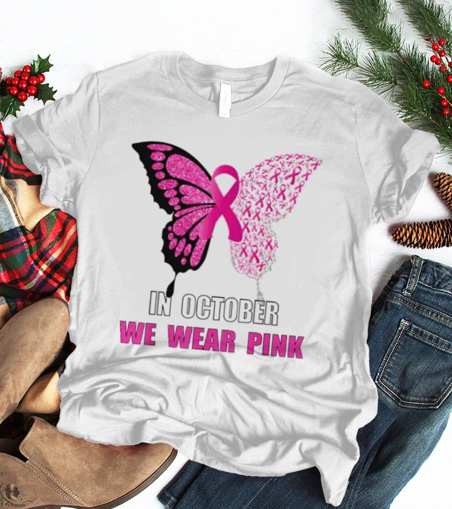 In October We Wear Pink Butterfly Ribbon Breast Cancer Awareness T-Shirt
