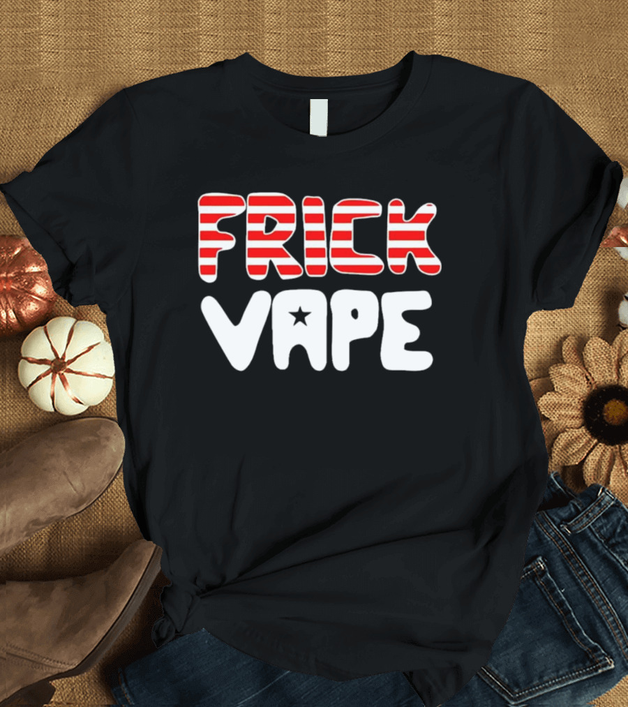 FRICK VAPE Patriotic Red White Stripes Star Shirt made from 100% pre-shrunk ring-spun cotton, unisex regular fit based on U.S. standard sizing. The shirt is designed, cut, sewn, and printed in the United States. Available in sizes S-5XL.