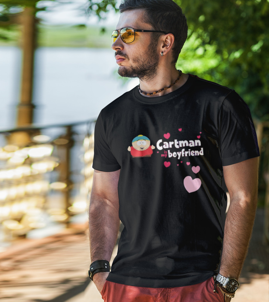 Cartman Is My Boyfriend Pink Hearts Cartoon Character Shirt made from 100% pre-shrunk ring-spun cotton, unisex regular fit based on U.S. standard sizing. The shirt is designed, cut, sewn, and printed in the United States. Available in sizes S-5XL.