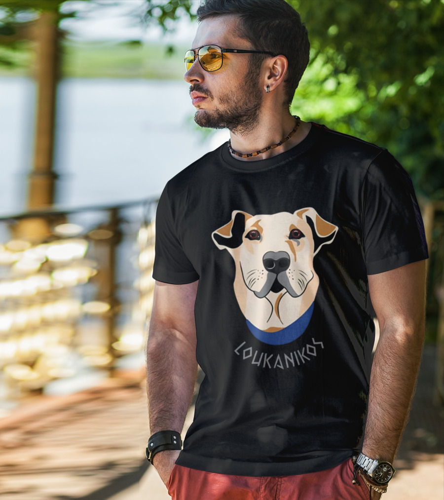 Loukanikos Dog Shirt made from 100% pre-shrunk ring-spun cotton, unisex regular fit based on U.S. standard sizing. The shirt is designed, cut, sewn, and printed in the United States. Available in sizes S-5XL.