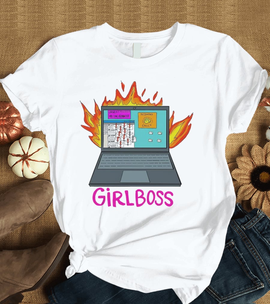 Girlboss Icarus Urgent Reminder Call Laptop On Fire T-Shirt