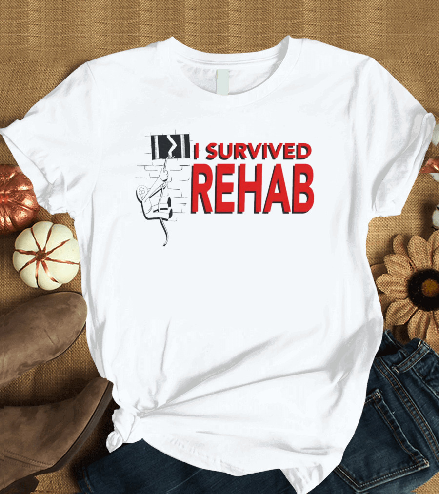 I Survived Rehab Red Text With Climbing Wall Background T-Shirt