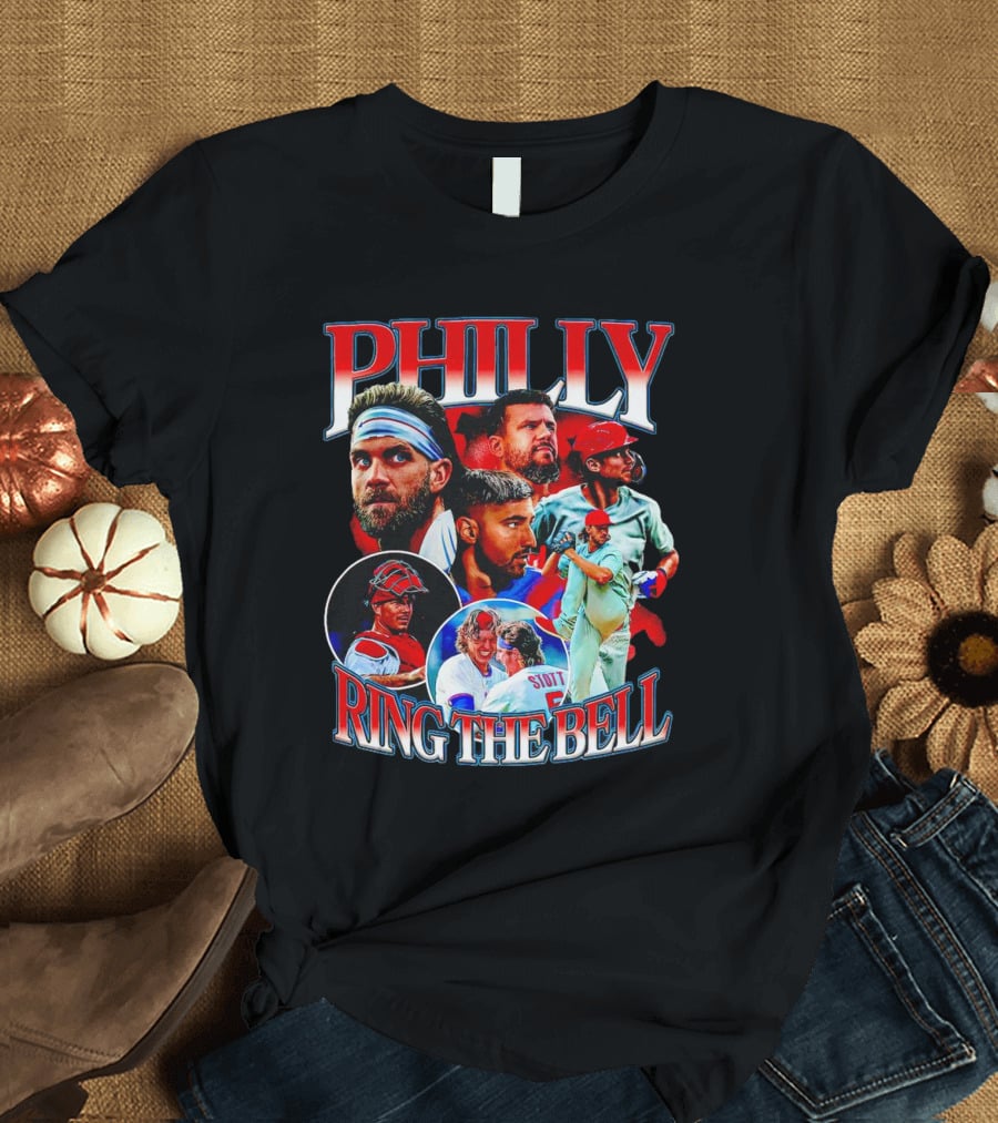 PHILLY RING THE BELL Baseball Players Collage Shirt made from 100% pre-shrunk ring-spun cotton, unisex regular fit based on U.S. standard sizing. The shirt is designed, cut, sewn, and printed in the United States. Available in sizes S-5XL.