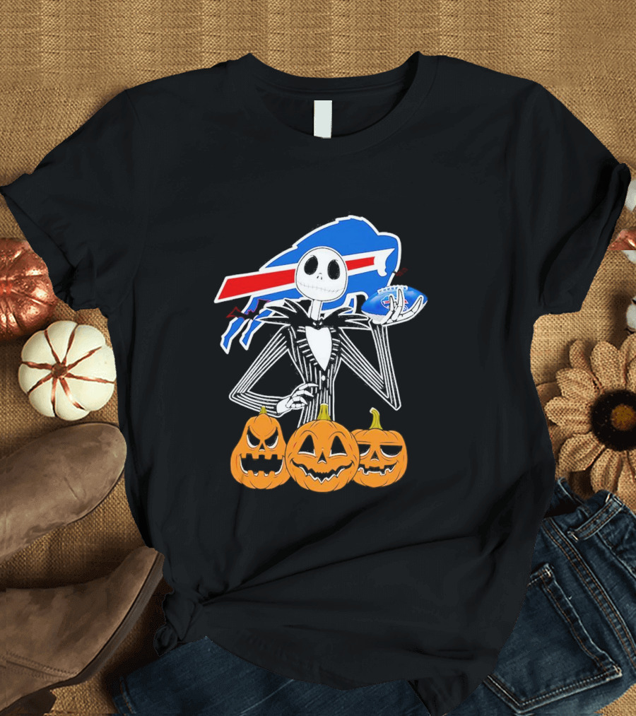 Buffalo Bills Jack Skellington Holding Football Halloween Pumpkins T-Shirt
