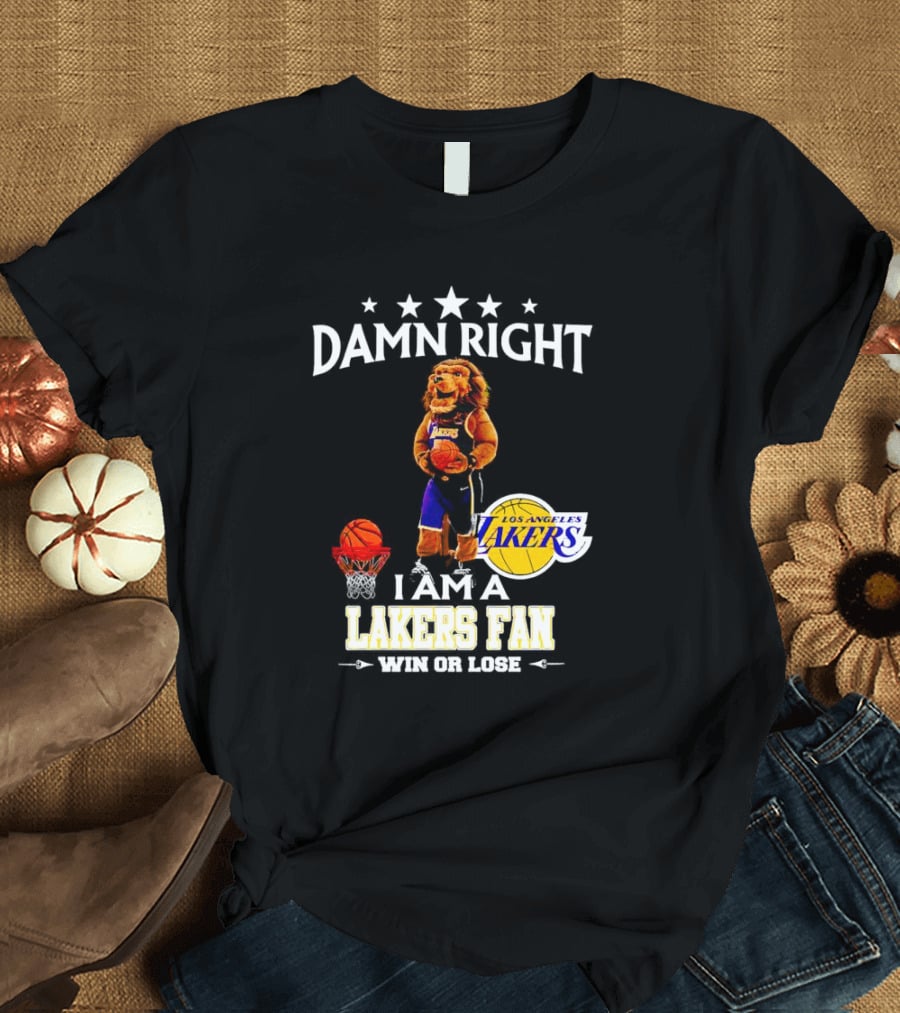 Damn Right I Am A Los Angeles Lakers Fan Win Or Lose Basketball Mascot T-Shirt