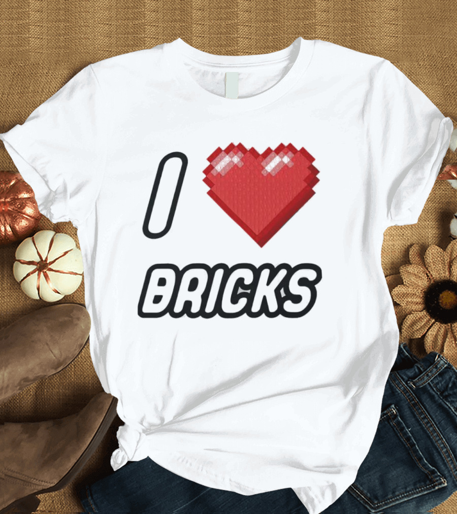 I Heart Bricks With Pixelated Red Heart T-Shirt