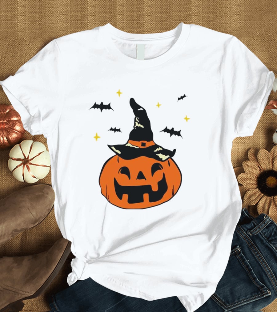 Jack-o’-lantern Witch Hat Bats Stars Halloween T-Shirt