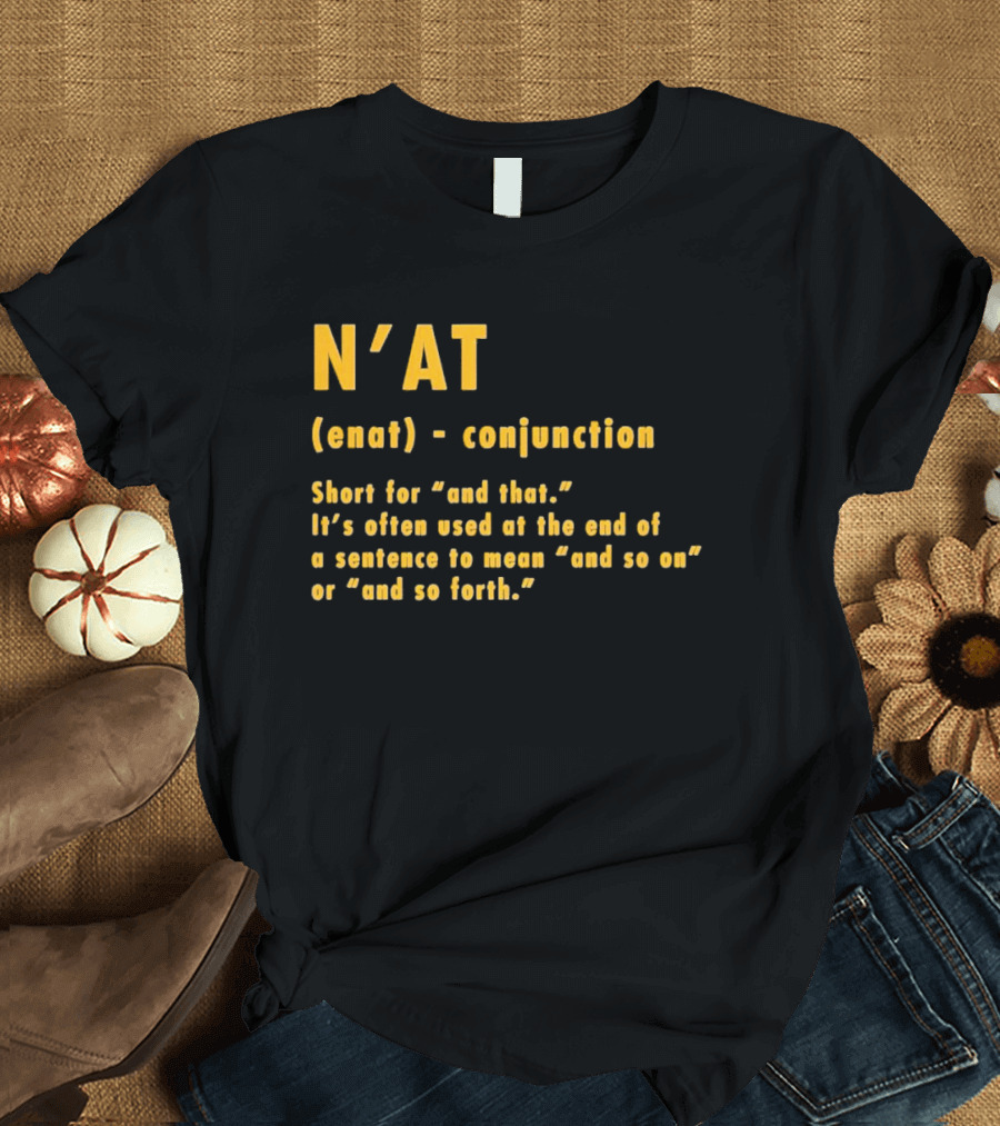N'at Enat Conjunction Short for And That It's Used at the End of a Sentence Shirt made from 100% pre-shrunk ring-spun cotton, unisex regular fit based on U.S. standard sizing. The shirt is designed, cut, sewn, and printed in the United States. Available in sizes S-5XL.