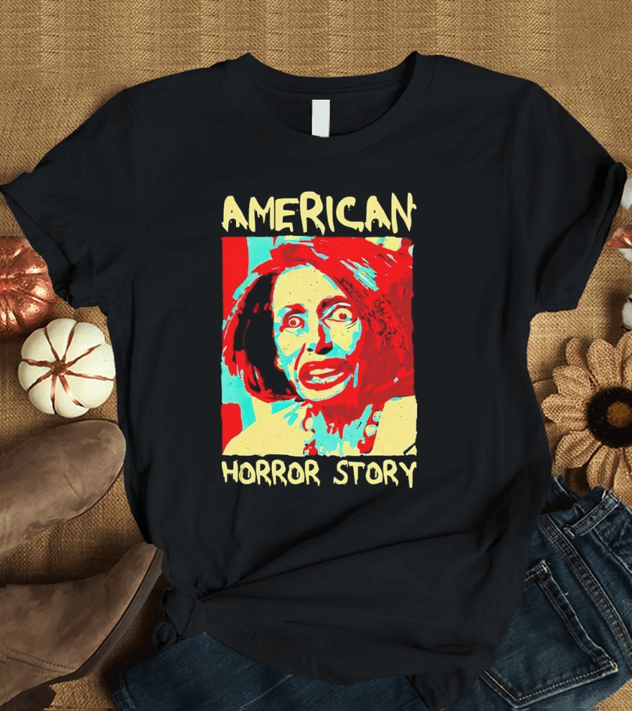 Nancy Pelosi American Horror Story Shirt made from 100% pre-shrunk ring-spun cotton, unisex regular fit based on U.S. standard sizing. The shirt is designed, cut, sewn, and printed in the United States. Available in sizes S-5XL.