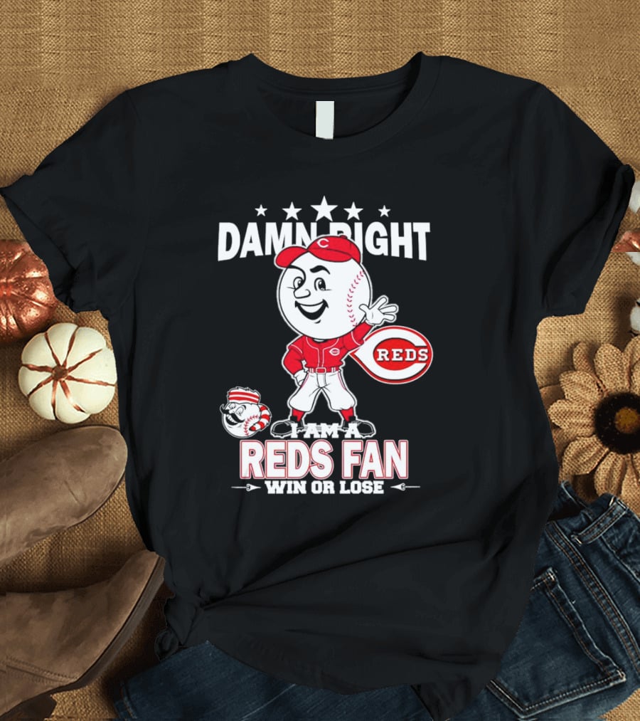 Damn Right I Am A Reds Fan Win Or Lose Cincinnati Mascot T-Shirt