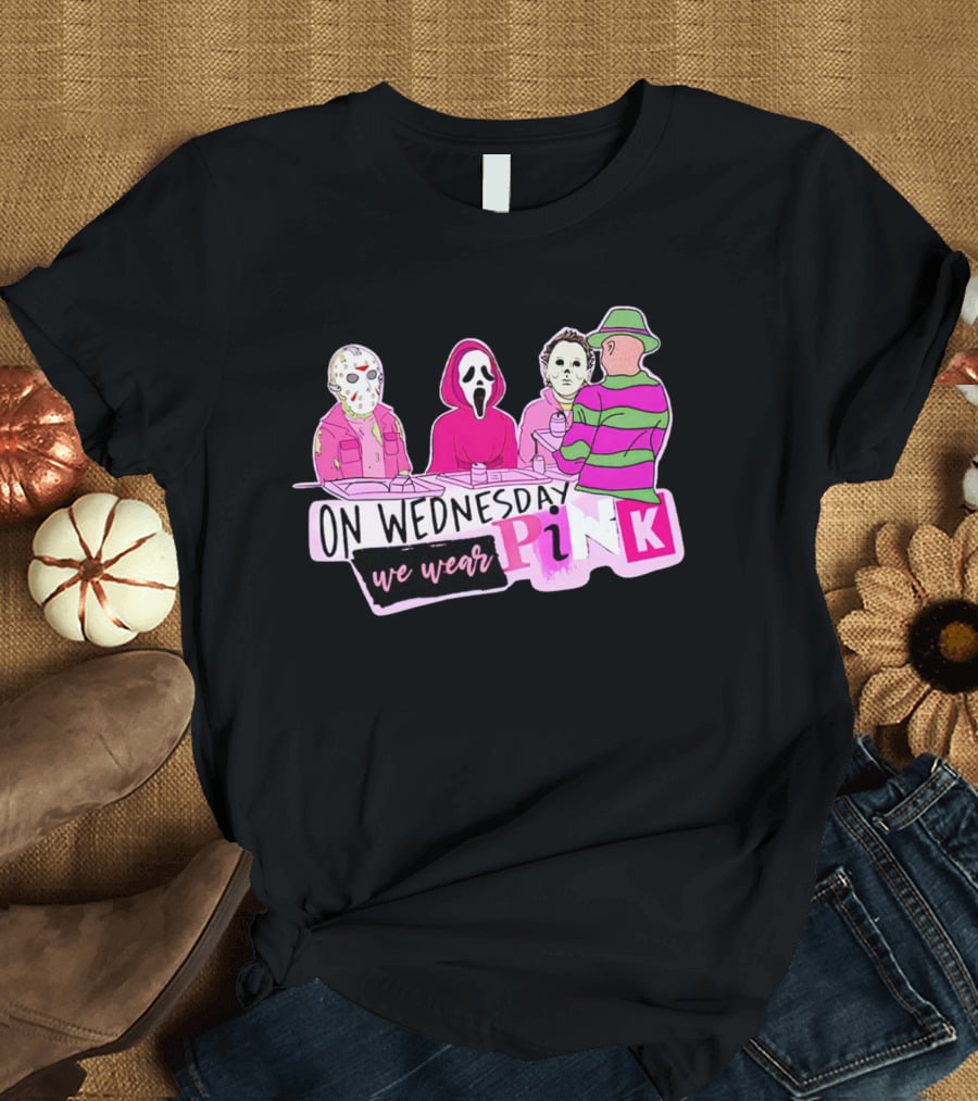 On Wednesdays We Wear Pink Horror Movie Characters Halloween Dinner Scene T-Shirt