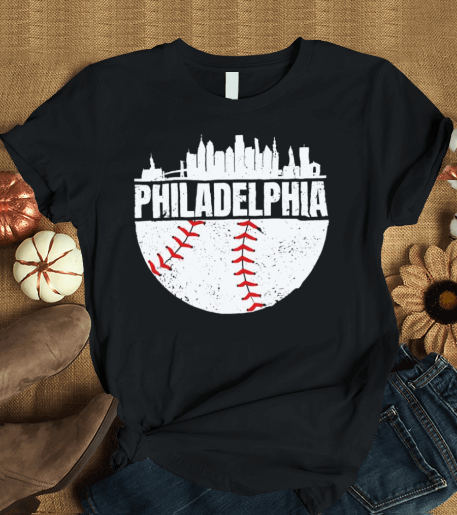 Philadelphia Skyline Baseball Urban Shirt made from 100% pre-shrunk ring-spun cotton, unisex regular fit based on U.S. standard sizing. The shirt is designed, cut, sewn, and printed in the United States. Available in sizes S-5XL.