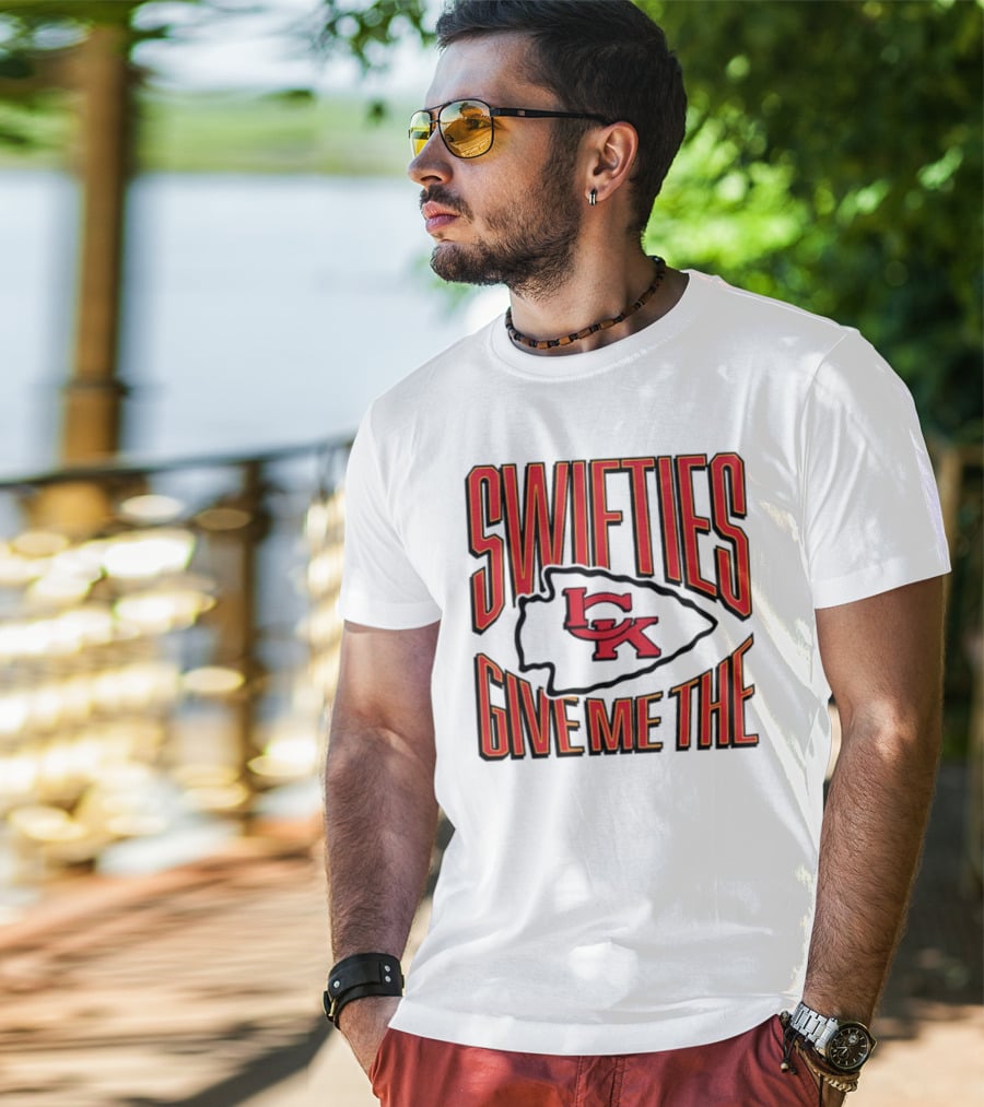 SWIFTIES Give Me The KC Chiefs ICK Shirt made from 100% pre-shrunk ring-spun cotton, unisex regular fit based on U.S. standard sizing. The shirt is designed, cut, sewn, and printed in the United States. Available in sizes S-5XL.