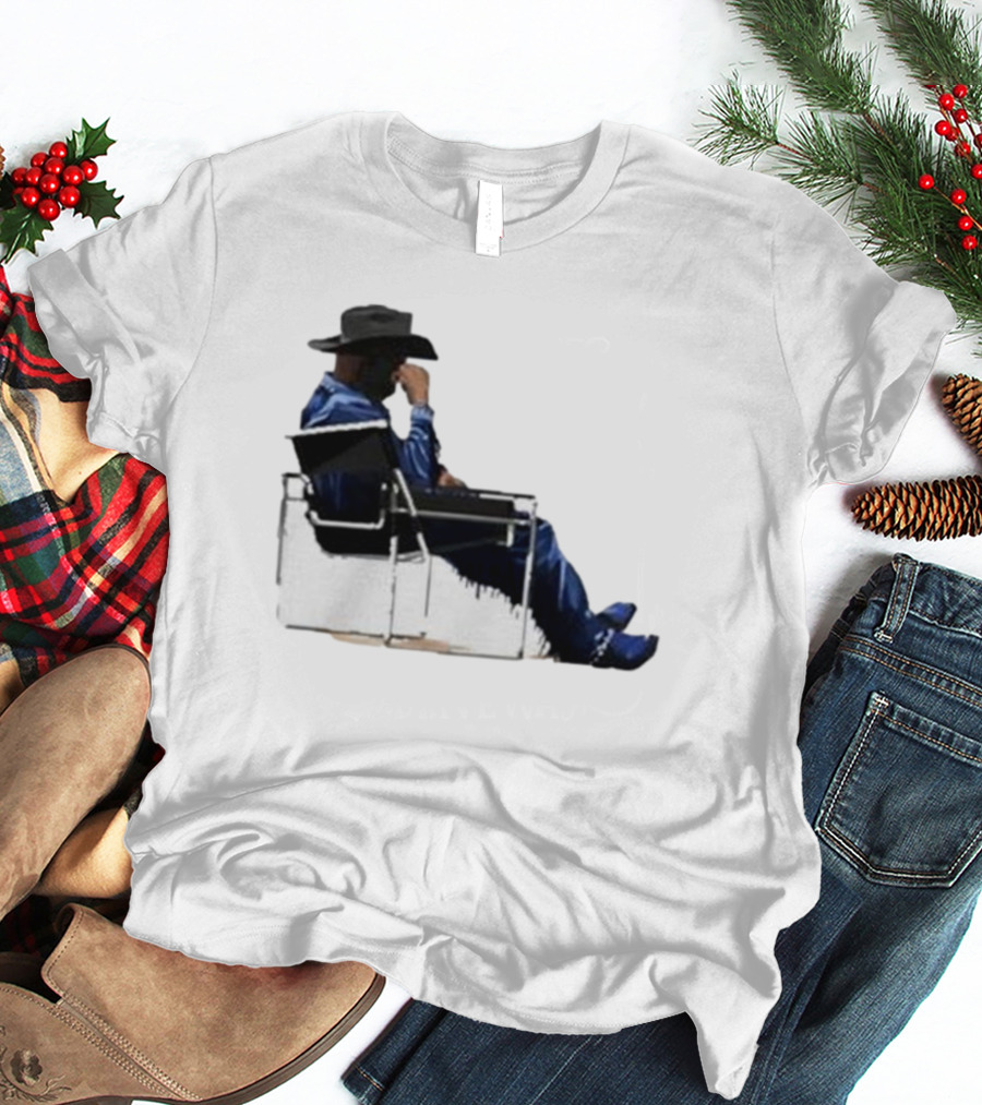 Bad Bunny Sitting Cowboy Chair Black Hat Blue T-Shirt