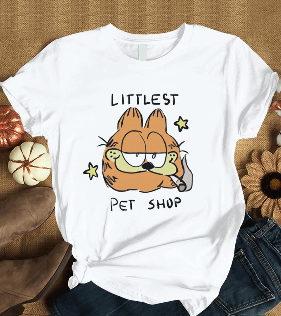 Littlest Pet Shop Garfield with Stars and Cigarette Shirt made from 100% pre-shrunk ring-spun cotton, unisex regular fit based on U.S. standard sizing. The shirt is designed, cut, sewn, and printed in the United States. Available in sizes S-5XL.