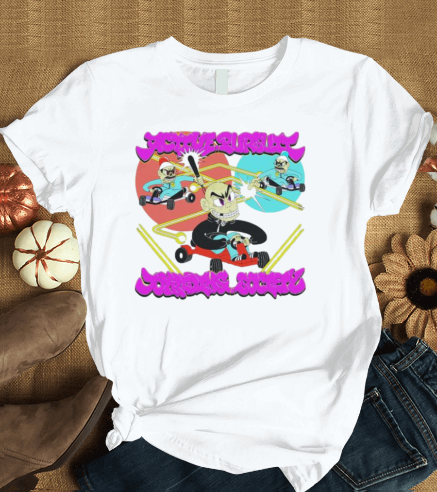 Active Pursuit Joyriding Society Shirt made from 100% pre-shrunk ring-spun cotton, unisex regular fit based on U.S. standard sizing. The shirt is designed, cut, sewn, and printed in the United States. Available in sizes S-5XL.