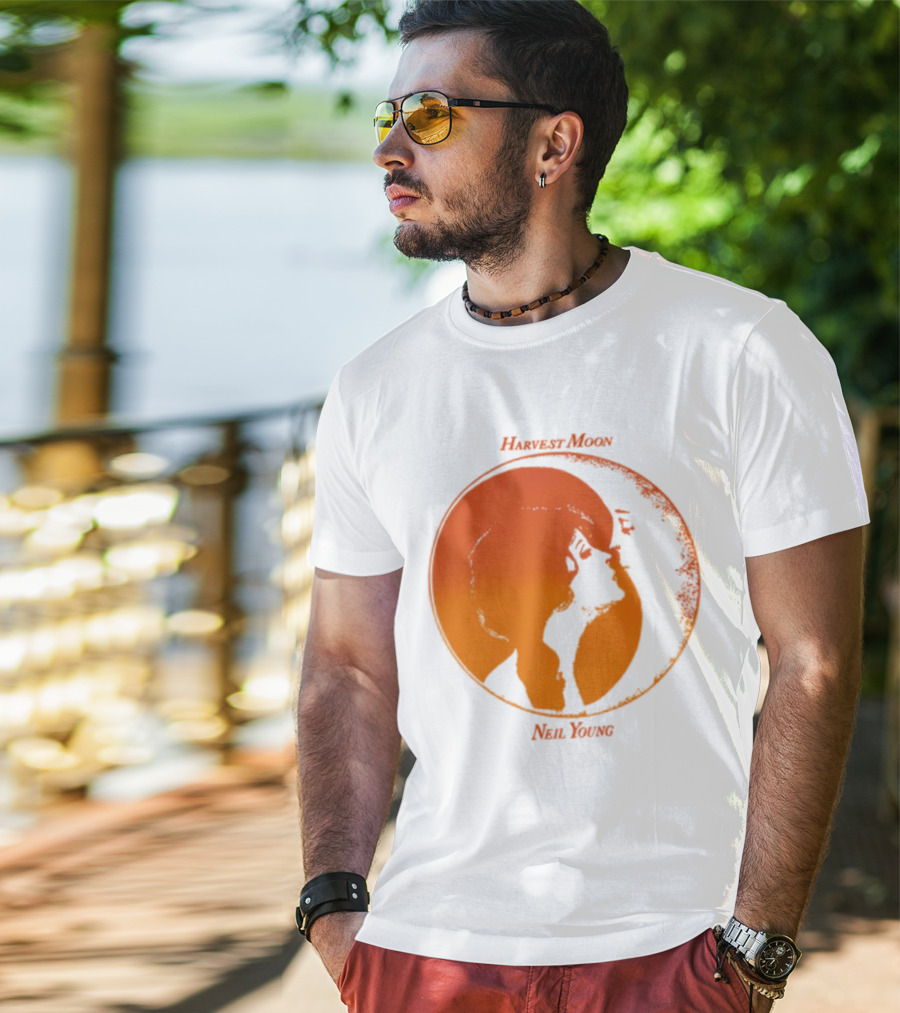 Harvest Moon Neil Young Orange Silhouette Circle T-Shirt