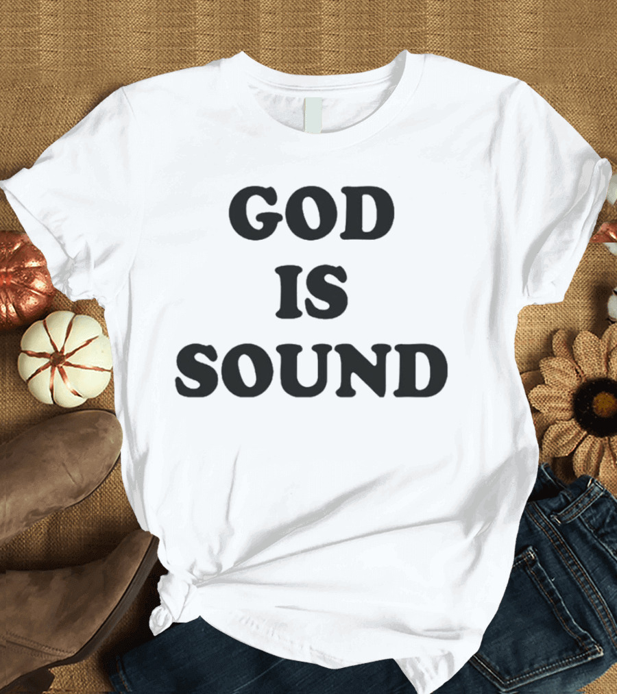 God Is Sound Shirt made from 100% pre-shrunk ring-spun cotton, unisex regular fit based on U.S. standard sizing. The shirt is designed, cut, sewn, and printed in the United States. Available in sizes S-5XL.