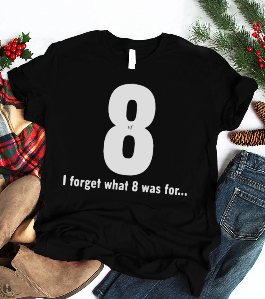 8 I Forget What 8 Was For.. Shirt made from 100% pre-shrunk ring-spun cotton, unisex regular fit based on U.S. standard sizing. The shirt is designed, cut, sewn, and printed in the United States. Available in sizes S-5XL.