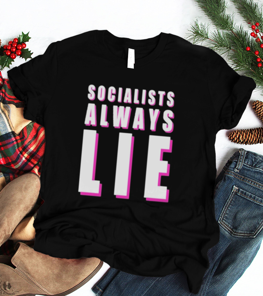 Karlyn Borysenko Socialists Always Lie Bold Text Contrasting Colors T-Shirt