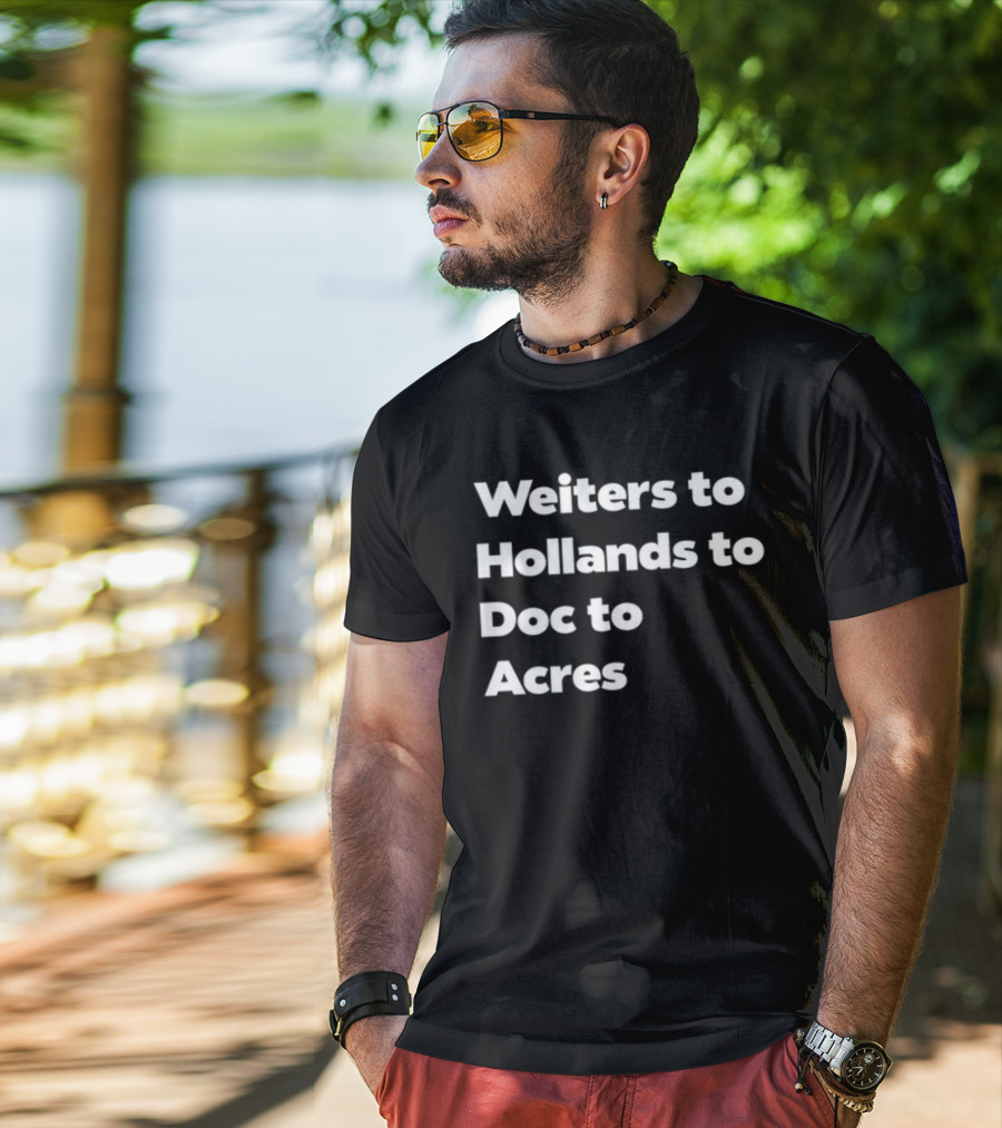 Weiters Hollands Doc Acres Football Names Sequence Shirt made from 100% pre-shrunk ring-spun cotton, unisex regular fit based on U.S. standard sizing. The shirt is designed, cut, sewn, and printed in the United States. Available in sizes S-5XL.