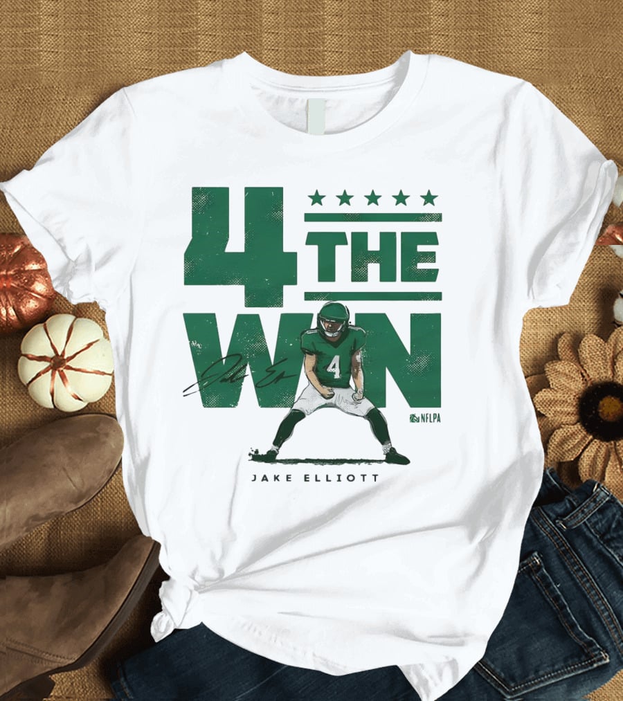 4 The Win Jake Elliott Football Player 4 Win G Signature Shirt made from 100% pre-shrunk ring-spun cotton, unisex regular fit based on U.S. standard sizing. The shirt is designed, cut, sewn, and printed in the United States. Available in sizes S-5XL.