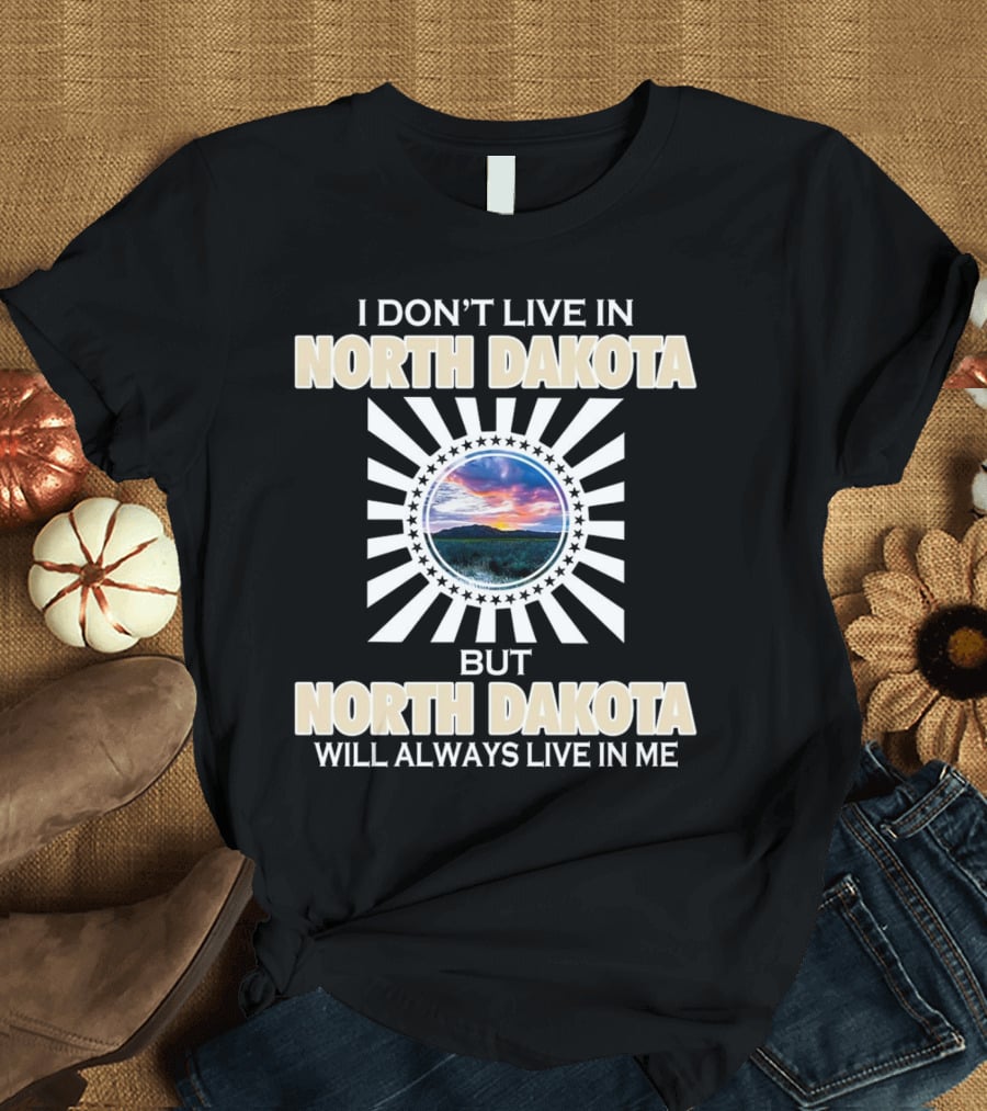 I Don’t Live In North Dakota But North Dakota Will Always Live In Me Sunset Landscape Stars Circle T-Shirt
