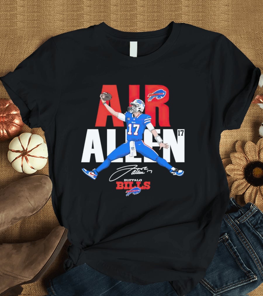 Josh Allen Air Buffalo Bills 17 Signature Football Shirt made from 100% pre-shrunk ring-spun cotton, unisex regular fit based on U.S. standard sizing. The shirt is designed, cut, sewn, and printed in the United States. Available in sizes S-5XL.