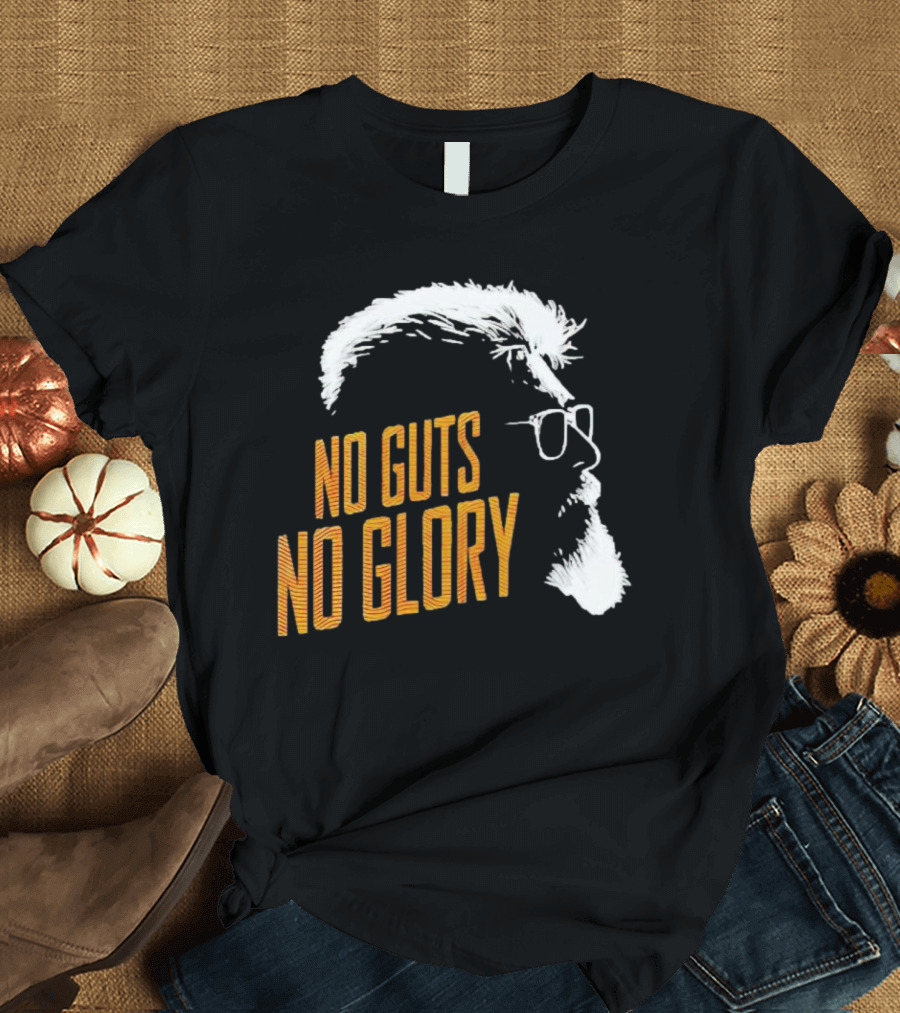 Thunivu No Guts No Glory Bold Text Shirt made from 100% pre-shrunk ring-spun cotton, unisex regular fit based on U.S. standard sizing. The shirt is designed, cut, sewn, and printed in the United States. Available in sizes S-5XL.