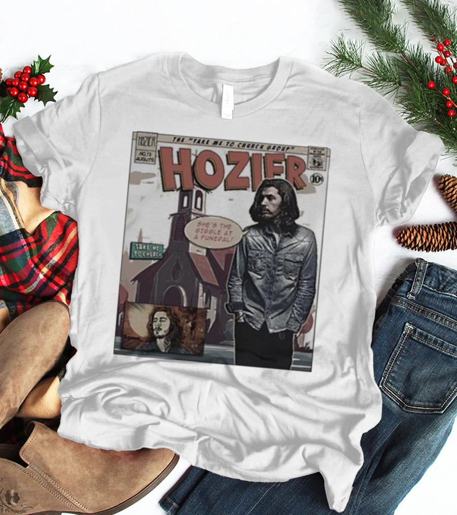 Hozier Comic Style Art She's The Giggle At A Funeral Take Me To Church Shirt made from 100% pre-shrunk ring-spun cotton, unisex regular fit based on U.S. standard sizing. The shirt is designed, cut, sewn, and printed in the United States. Available in sizes S-5XL.