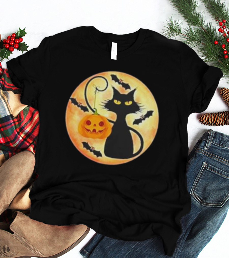 Funny Pumpkin Black Cat Halloween Witch Bat Moon T-Shirt