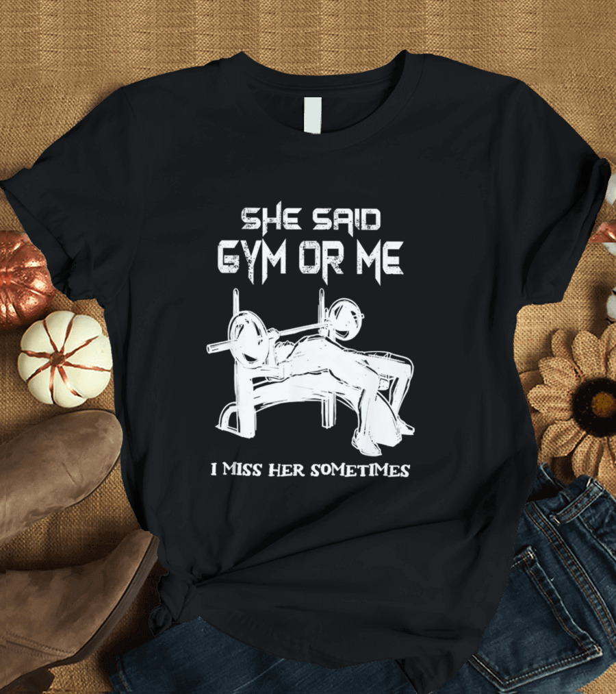 She Said Gym Or Me I Miss Her Sometimes Bench Press Bodybuilding Humor T-Shirt